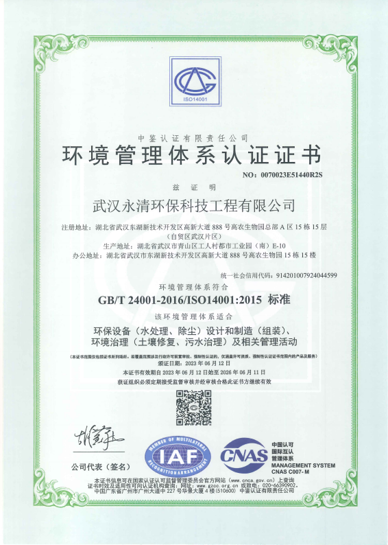 ISO環(huán)境管理體系認(rèn)證證書