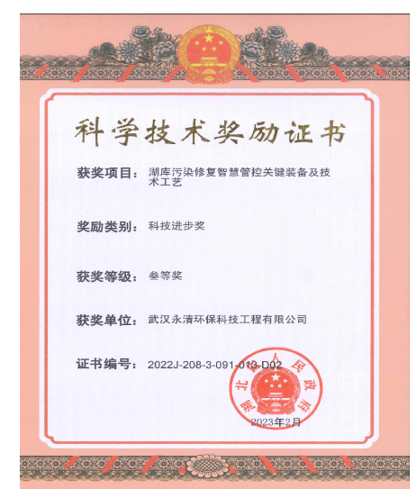 3月16日,湖北省科技創(chuàng)新大會在武漢召開,會上正式公布了《2022年度湖北省科學(xué)技術(shù)獎獲獎名單》,武漢永清環(huán)?萍脊こ逃邢薰緮y手省生態(tài)環(huán)境科學(xué)研究院參與完成的“湖庫污染智慧管控關(guān)鍵裝備及技術(shù)工藝”項目榮獲該科學(xué)技術(shù)進(jìn)步三等獎。